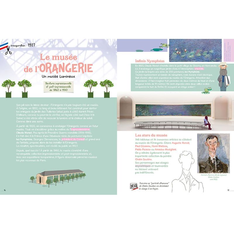 Un livre ludique qui invite les enfants à explorer 29 musées de Paris, leur histoire, leur architecture, leurs richesses. Du musée du Louvre à la Cité des Sciences en passant par le musée Rodin, les Arts et Métiers ou le Petit Palais, les petits lecteurs se promènent à travers lart, la science, larchitecture, la géographie. Ils font aussi connaissance avec dillustres...