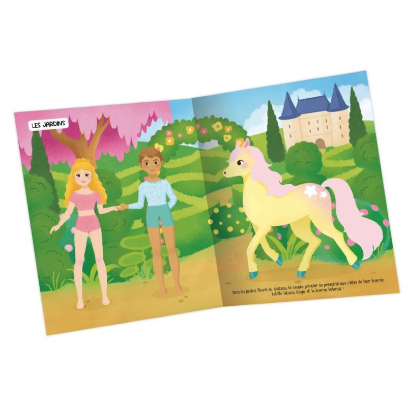 Un cahier de plus 500 autocollants pour habiller des silhouettes de princesses et de licornes.