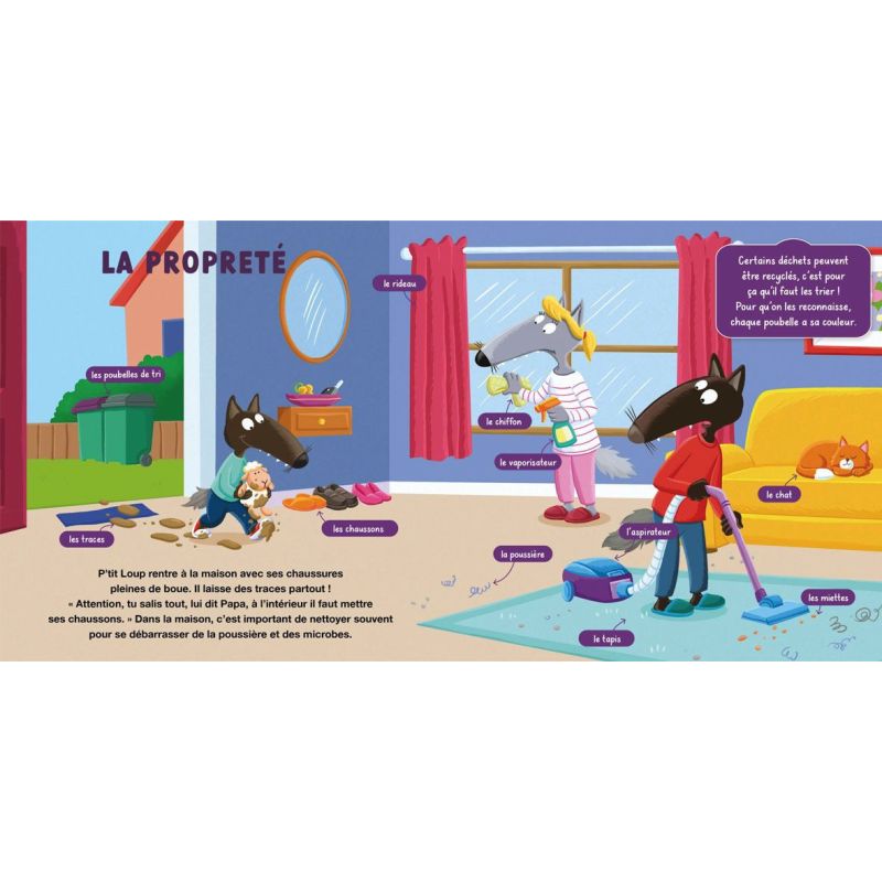 Accompagne P'tit Loup dans son apprentissage de la propreté: se laver les mains, aller sur le pot, prendre un bain, laver Doudou ...