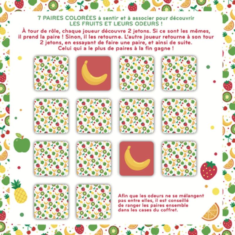 Un jeu sensoriel unique qui stimule la mémoire, lodorat et la reconnaissance des couleurs et des fruits.