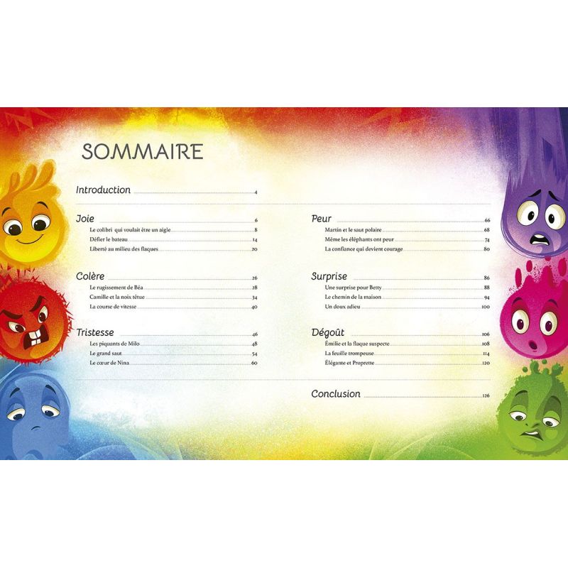 Joie, Colère, Tristesse, Peur, Dégoût et Surprise racontent aux enfants les histoires de petits animaux confrontés pour la première fois à des émotions nouvelles et intenses.