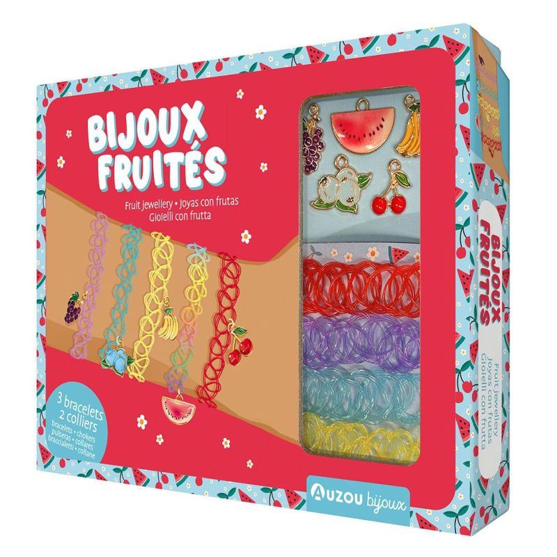 Grâce aux élastiques et aux jolis médaillons émaillés et colorés, lenfant crée 5 bijoux fun et super tendances, aux couleurs acidulés et douces. 2 colliers chockers et 3 bracelets !