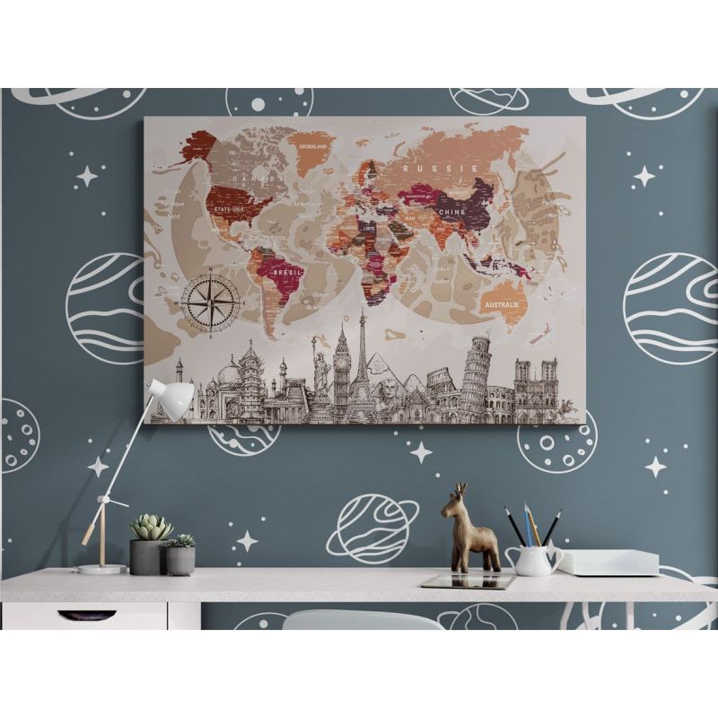 Cette nouvelle carte du monde avec monuments, taille 100 x 70 cm, conçue avec une meilleure lisibilité, détaillée en français et imprimée sur du papier de 170 g/m² certifié PEFC (provenant de forêts gérées durablement), sera idéale pour les passionnés de voyages et les enfants en quête d'aventure.