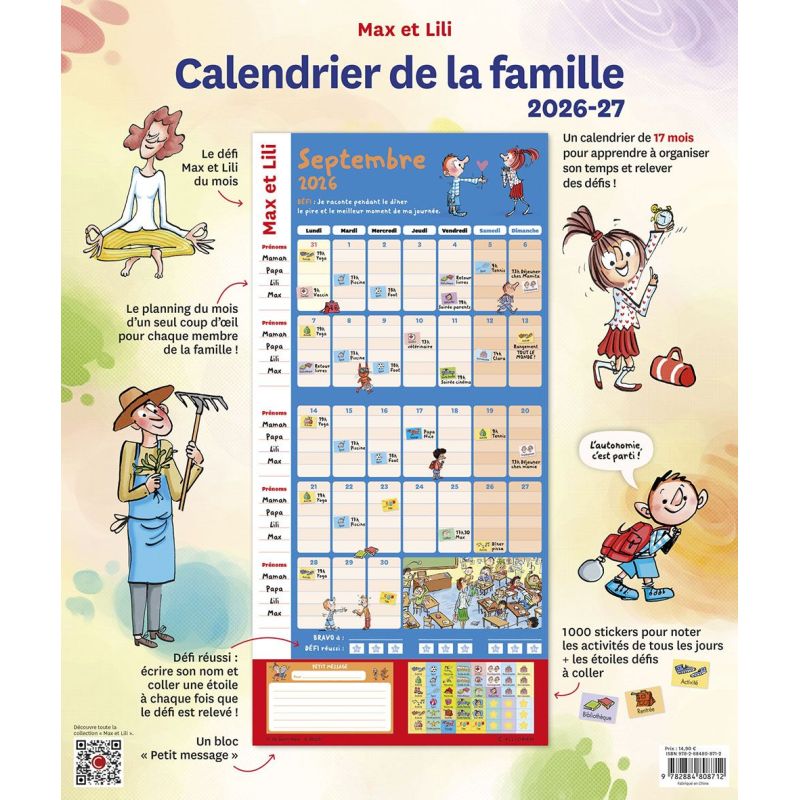 Un calendrier pratique pour les emplois du temps de toute la famille avec Max et Lili !