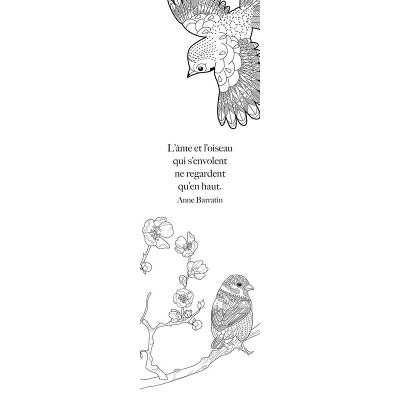 Offrez une touche poétique à vos lectures grâce à ce bloc de 40 marque-pages à colorier, où chaque pièce célèbre la grâce des oiseaux. Au recto, laissez-vous inspirer par une citation poétique rendant hommage aux oiseaux, tout en coloriant un délicat motif. Au verso, un encart est prévu pour noter vos impressions de lecture, vos pensées ou vos citations préférées. Une alliance parfaite entre... Lire la suite