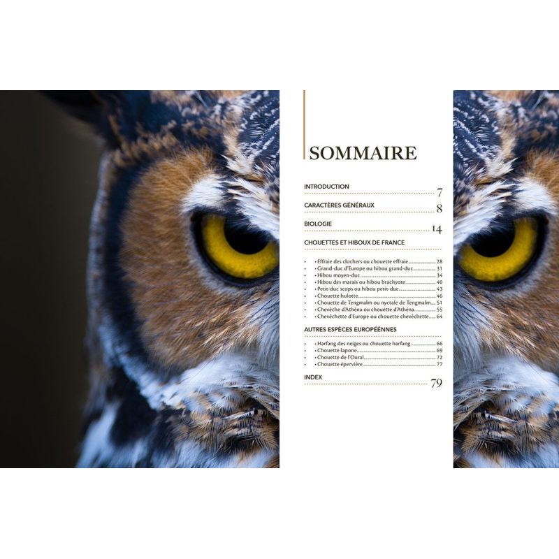 - Le livre présente les espèces de chouettes et hiboux les plus emblématiques de France et quelques espèces européennes.