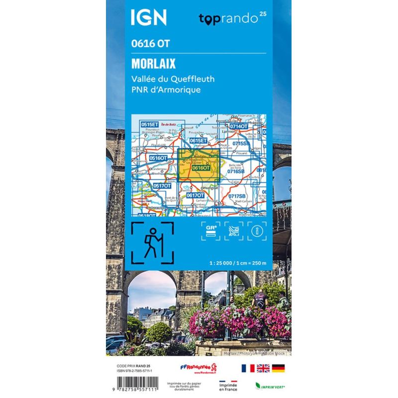 L'indispensable carte de randonnée IGN 0616OT. D'une très grande précision elle contient tous les détails existant sur le terrain : voies de communication et sentiers, constructions y compris les hangars, bois, arbres isolés, rivièress, sources. Sans oublier la représentation du relief par des courbes de niveau. Les sentiers balisés et les informations touristiques sont également représentés.... Lire la suite