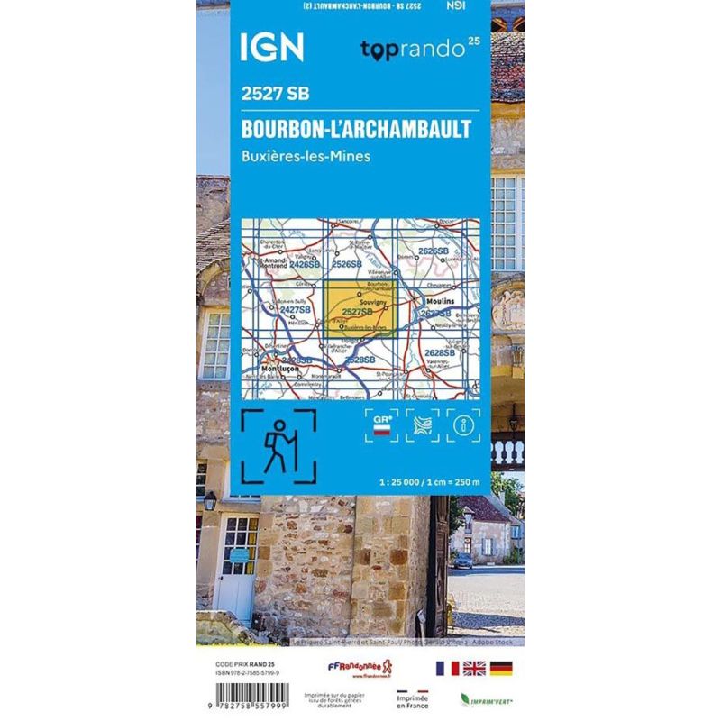 L'indispensable carte de randonnée IGN 2527B. D'une très grande précision elle contient tous les détails existants sur le terrain : voies de communication jusqu'au moindre sentier, constructions jusqu'au hangar, bois, arbre isolé, rivière, source... Sans oublier la représentation du relief par des courbes de niveau. Les sentiers balisés et les informations touristiques sont également... Lire la suite