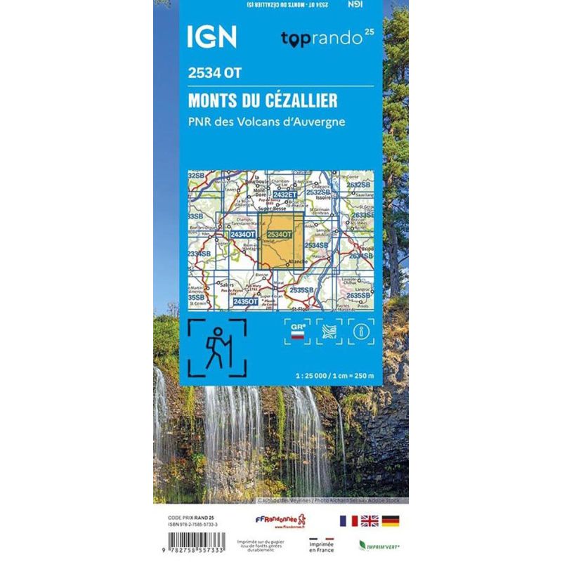 L'indispensable carte de randonnée IGN 2534OT. D'une très grande précision elle contient tous les détails existants sur le terrain : voies de communication jusqu'au moindre sentier, constructions jusqu'au hangar, bois, arbre isolé, rivière, source... Sans oublier la représentation du relief par des courbes de niveau. Les sentiers balisés et les informations touristiques sont également... Lire la suite