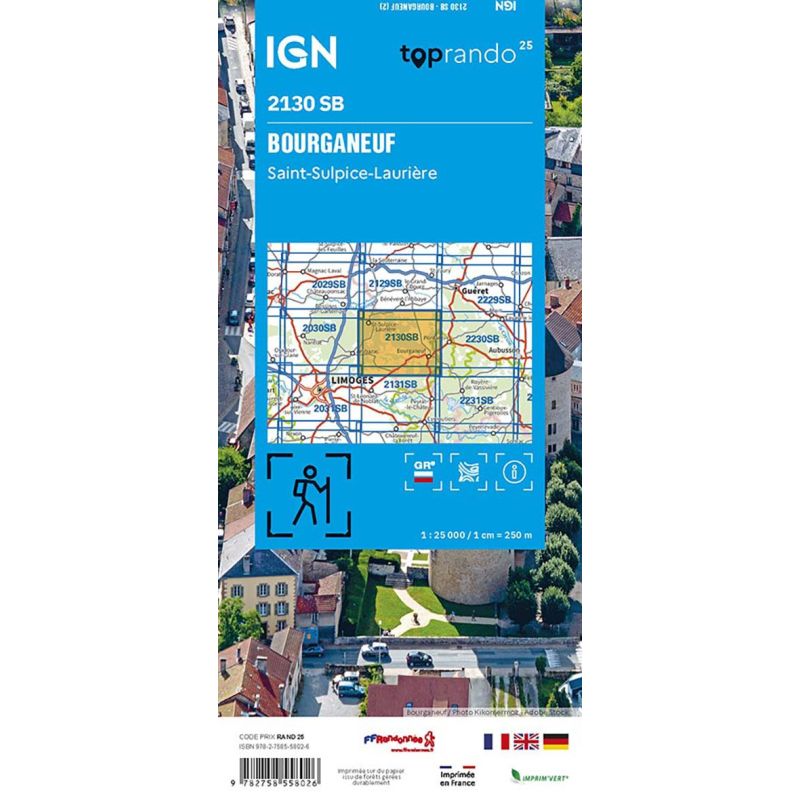 L'indispensable carte de randonnée IGN 2130SB. D'une très grande précision elle contient tous les détails existants sur le terrain : voies de communication jusqu'au moindre sentier, constructions jusqu'au hangar, bois, arbre isolé, rivière, source... Sans oublier la représentation du relief par des courbes de niveau. Les sentiers balisés et les informations touristiques sont également... Lire la suite