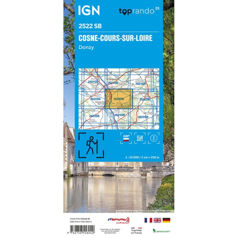 L'indispensable carte de randonnée IGN 2522SB. D'une très grande précision elle contient tous les détails existants sur le terrain : voies de communication jusqu'au moindre sentier, constructions jusqu'au hangar, bois, arbre isolé, rivière, source... Sans oublier la représentation du relief par des courbes de niveau. Les sentiers balisés et les informations touristiques sont également... Lire la suite
