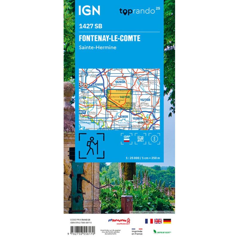 L'indispensable carte de randonnée IGN 1427SB. D'une très grande précision elle contient tous les détails existants sur le terrain : voies de communication jusqu'au moindre sentier, constructions jusqu'au hangar, bois, arbre isolé, rivière, source... Sans oublier la représentation du relief par des courbes de niveau. Les sentiers balisés et les informations touristiques sont également... Lire la suite