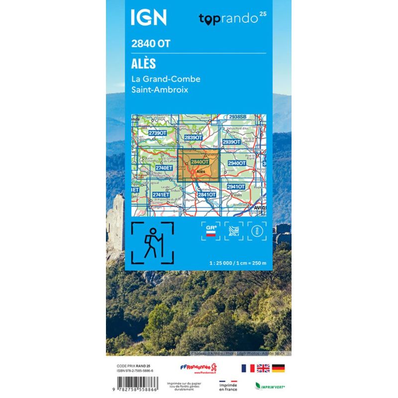 L'indispensable carte de randonnée IGN 2840OT. D'une très grande précision elle contient tous les détails existants sur le terrain : voies de communication jusqu'au moindre sentier, constructions jusqu'au hangar, bois, arbre isolé, rivière, source... Sans oublier la représentation du relief par des courbes de niveau. Les sentiers balisés et les informations touristiques sont également... Lire la suite
