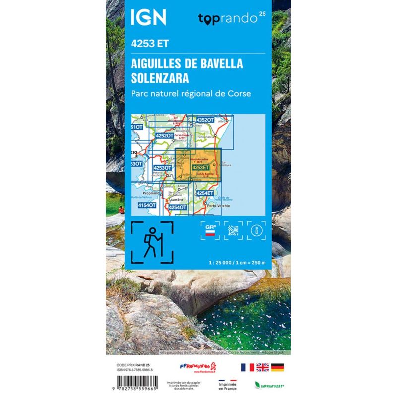 L'indispensable carte de randonnée IGN 4253ET. D'une très grande précision elle contient tous les détails existants sur le terrain : voies de communication jusqu'au moindre sentier, constructions jusqu'au hangar, bois, arbre isolé, rivière, source... Sans oublier la représentation du relief par des courbes de niveau. Les sentiers balisés et les informations touristiques sont également... Lire la suite