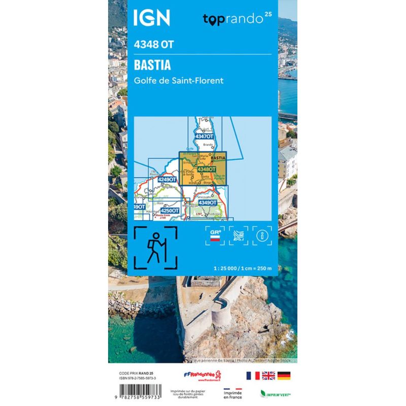 L'indispensable carte de randonnée IGN 4348OT. D'une très grande précision elle contient tous les détails existants sur le terrain : voies de communication jusqu'au moindre sentier, constructions jusqu'au hangar, bois, arbre isolé, rivière, source... Sans oublier la représentation du relief par des courbes de niveau. Les sentiers balisés et les informations touristiques sont également... Lire la suite