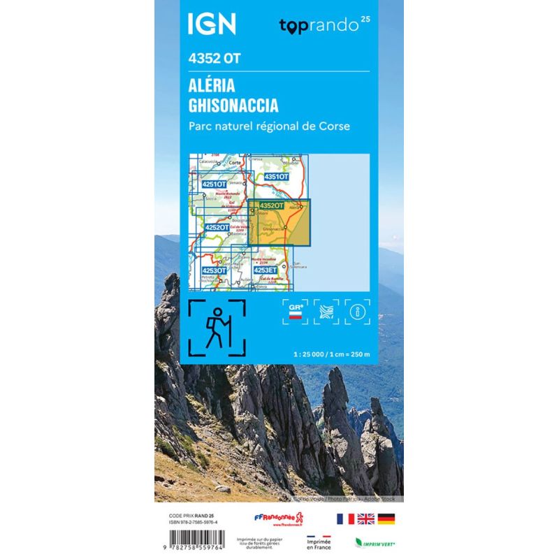 L'indispensable carte de randonnée IGN 4352OT. D'une très grande précision elle contient tous les détails existants sur le terrain : voies de communication jusqu'au moindre sentier, constructions jusqu'au hangar, bois, arbre isolé, rivière, source... Sans oublier la représentation du relief par des courbes de niveau. Les sentiers balisés et les informations touristiques sont également... Lire la suite