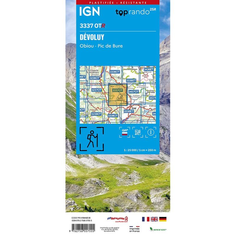 L'indispensable carte de randonnée IGN 3337OT. D'une très grande précision elle contient tous les détails existants sur le terrain : voies de communication jusqu'au moindre sentier, constructions jusqu'au hangar, bois, arbre isolé, rivière, source... Sans oublier la représentation du relief par des courbes de niveau. Les sentiers balisés et les informations...