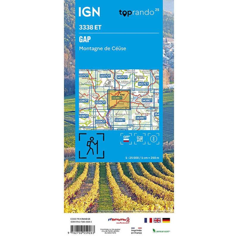 L'indispensable carte de randonnée IGN 3338ET. D'une très grande précision elle contient tous les détails existants sur le terrain : voies de communication jusqu'au moindre sentier, constructions jusqu'au hangar, bois, arbre isolé, rivière, source... Sans oublier la représentation du relief par des courbes de niveau. Les sentiers balisés et les informations touristiques sont également... Lire la suite