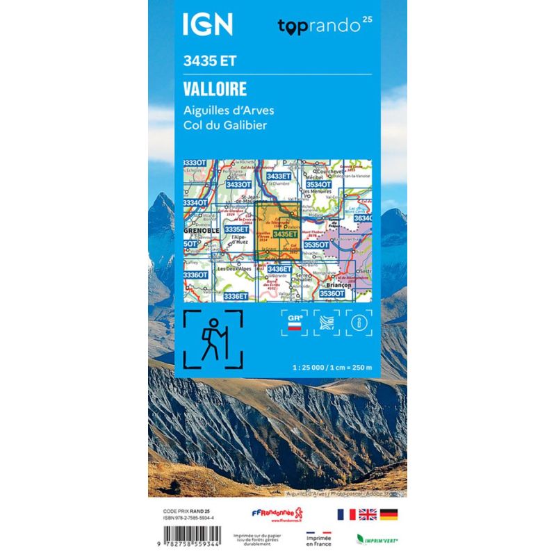 L'indispensable carte de randonnée IGN 3435ET. D'une très grande précision elle contient tous les détails existants sur le terrain : voies de communication jusqu'au moindre sentier, constructions jusqu'au hangar, bois, arbre isolé, rivière, source... Sans oublier la représentation du relief par des courbes de niveau. Les sentiers balisés et les informations touristiques sont également... Lire la suite