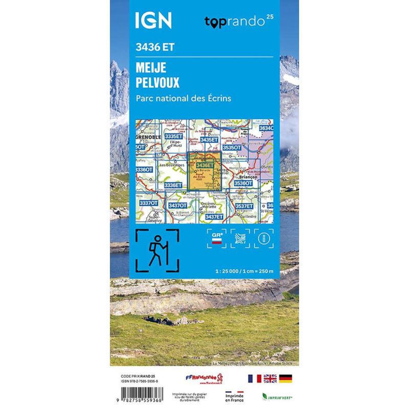 L'indispensable carte de randonnée IGN 3436ET. D'une très grande précision elle contient tous les détails existants sur le terrain : voies de communication jusqu'au moindre sentier, constructions jusqu'au hangar, bois, arbre isolé, rivière, source... Sans oublier la représentation du relief par des courbes de niveau. Les sentiers balisés et les informations touristiques sont également... Lire la suite