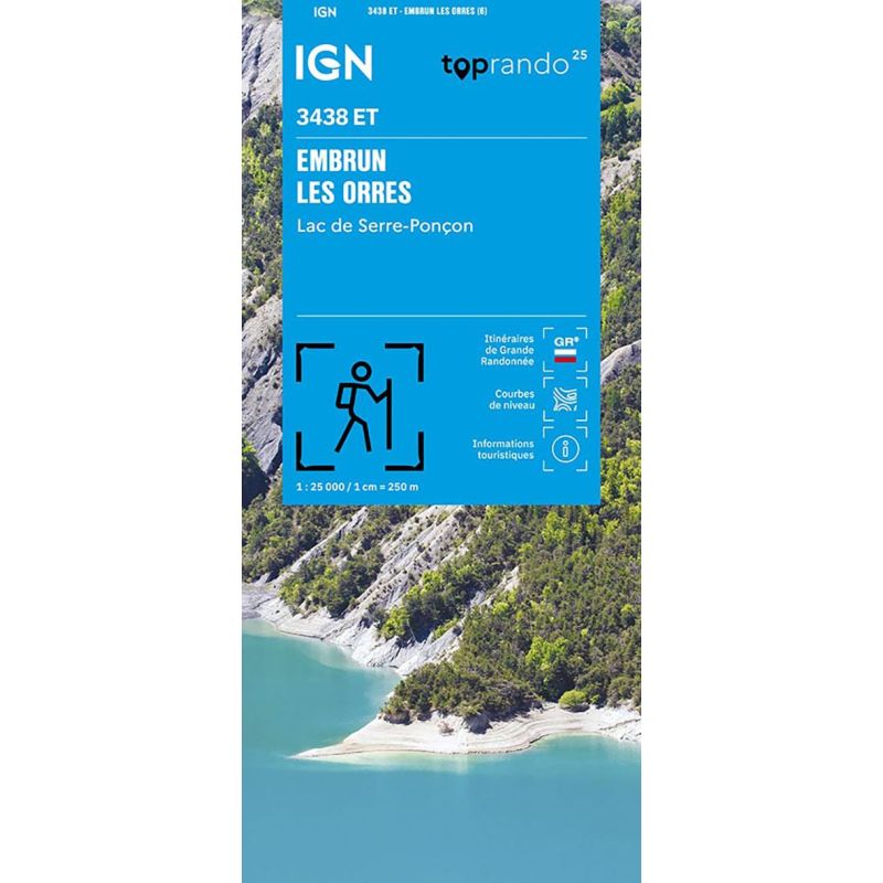 L'indispensable carte de randonnée IGN 3438ET. D'une très grande précision elle contient tous les détails existants sur le terrain : voies de communication jusqu'au moindre sentier, constructions jusqu'au hangar, bois, arbre isolé, rivière, source... Sans oublier la représentation du relief par des courbes de niveau. Les sentiers balisés et les informations touristiques sont également... Lire la suite