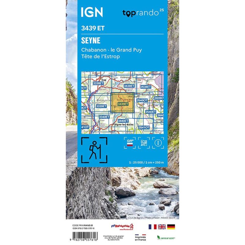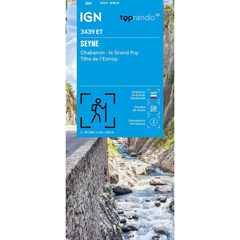 L'indispensable carte de randonnée IGN 3439ET. D'une très grande précision elle contient tous les détails existants sur le terrain : voies de communication jusqu'au moindre sentier, constructions jusqu'au hangar, bois, arbre isolé, rivière, source... Sans oublier la représentation du relief par des courbes de niveau. Les sentiers balisés et les informations touristiques sont également... Lire la suite