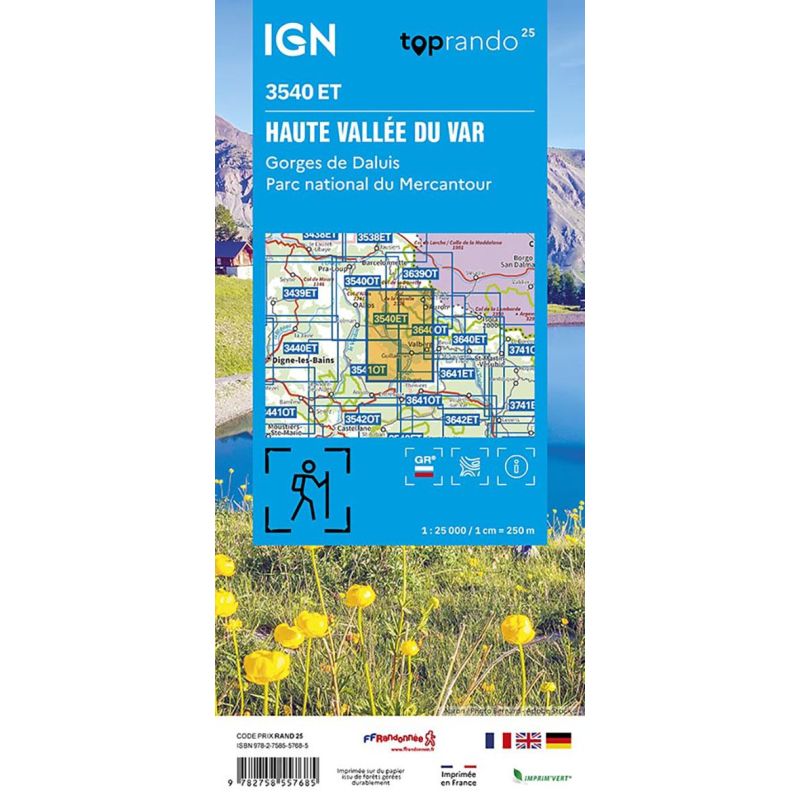 L'indispensable carte de randonnée IGN 3540ET. D'une très grande précision elle contient tous les détails existants sur le terrain : voies de communication jusqu'au moindre sentier, constructions jusqu'au hangar, bois, arbre isolé, rivière, source... Sans oublier la représentation du relief par des courbes de niveau. Les sentiers balisés et les informations touristiques sont également... Lire la suite