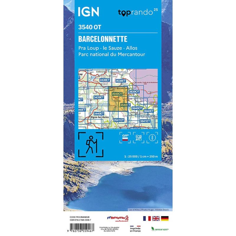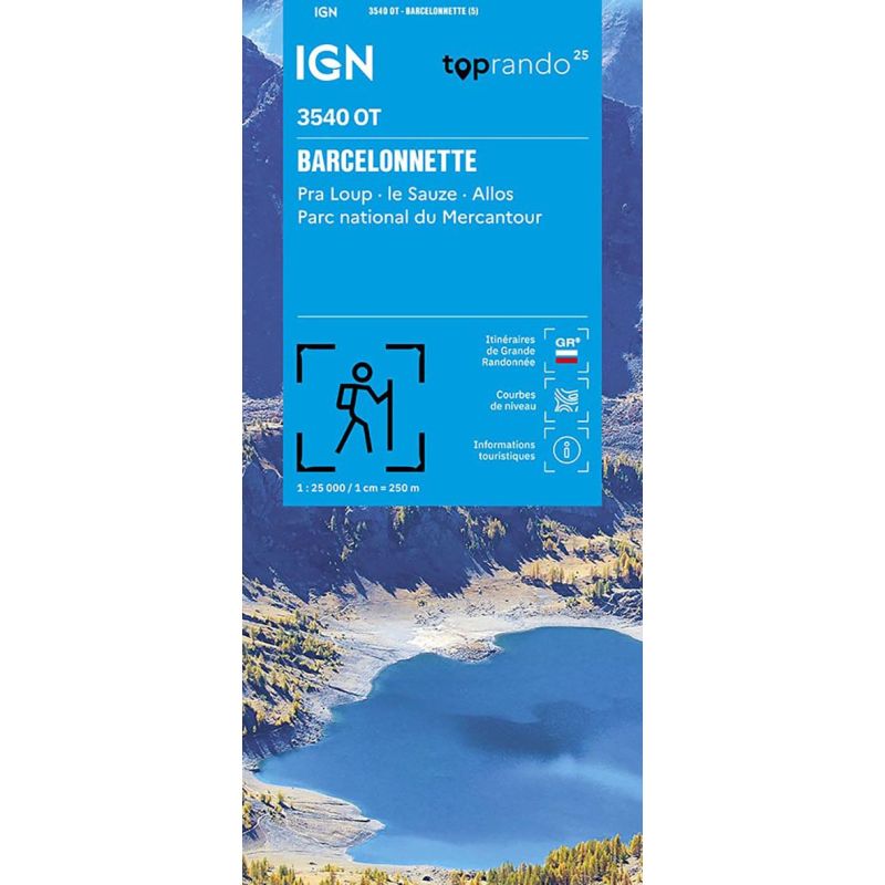 L'indispensable carte de randonnée IGN 3540OT. D'une très grande précision elle contient tous les détails existants sur le terrain : voies de communication jusqu'au moindre sentier, constructions jusqu'au hangar, bois, arbre isolé, rivière, source... Sans oublier la représentation du relief par des courbes de niveau. Les sentiers balisés et les informations touristiques sont également... Lire la suite