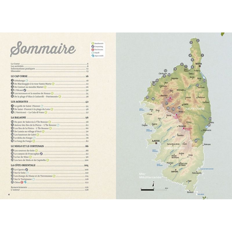 Ce guide vous propose un voyage inédit en Haute-Corse avec 25 aventures pour tous, maintes fois vécues et testées par l'auteur de cet ouvrage. Se mêlent la randonnée, le canyoning, la via ferrata et le kayak. Dès qu'un matériel spécifique s'impose, il y a des prestataires pour vous accompagner (canyoning) ou des points de locations (via ferrata et kayak) au départ de ces réjouissances.