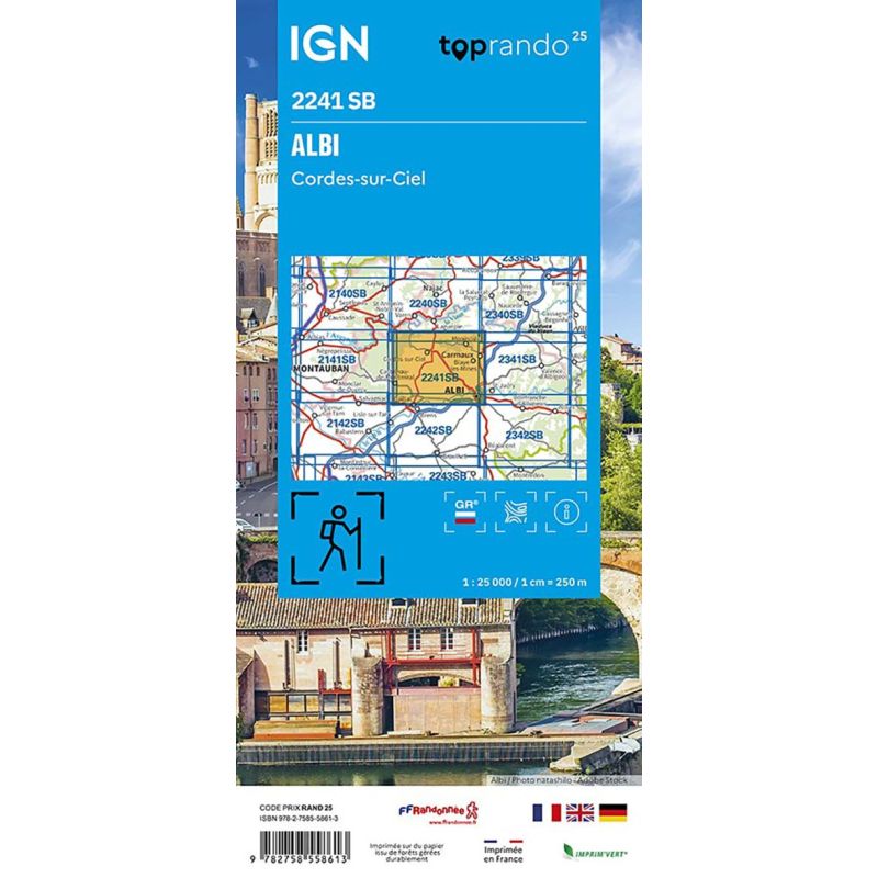 L'indispensable carte de randonnée IGN 2241SB. D'une très grande précision elle contient tous les détails existants sur le terrain : voies de communication jusqu'au moindre sentier, constructions jusqu'au hangar, bois, arbre isolé, rivière, source... Sans oublier la représentation du relief par des courbes de niveau. Les sentiers balisés et les informations touristiques sont également... Lire la suite