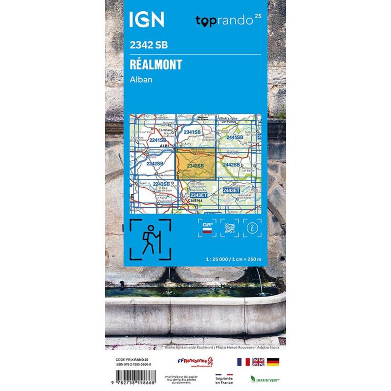 L'indispensable carte de randonnée IGN 2342SB. D'une très grande précision elle contient tous les détails existants sur le terrain : voies de communication jusqu'au moindre sentier, constructions jusqu'au hangar, bois, arbre isolé, rivière, source... Sans oublier la représentation du relief par des courbes de niveau. Les sentiers balisés et les informations touristiques sont également...