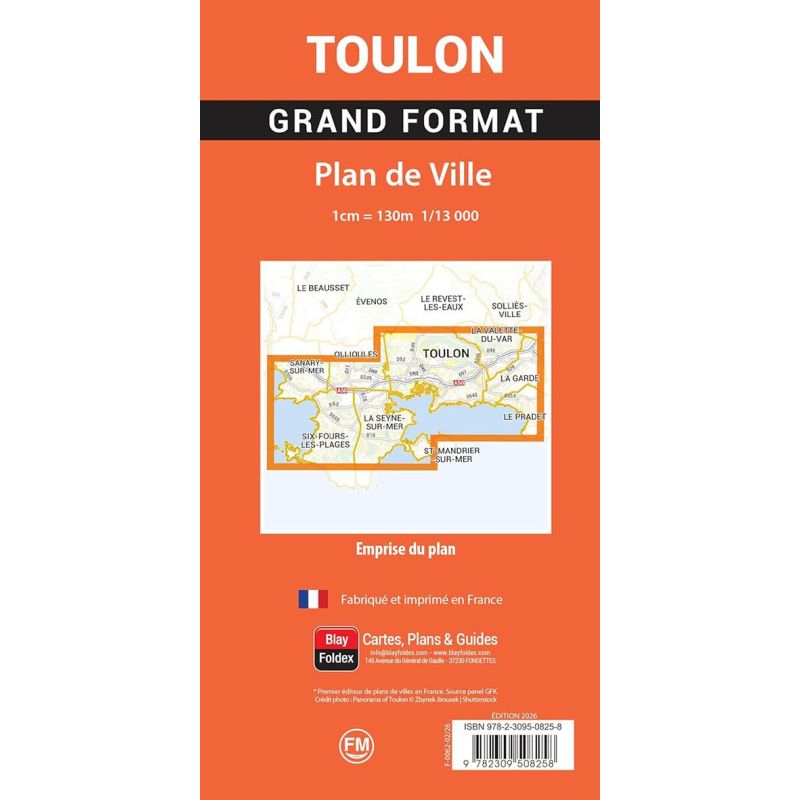 Le plan de ville de Toulon Grand Format est constitué d'un plan plié détachable et d'un index fourni sous forme de livret .
