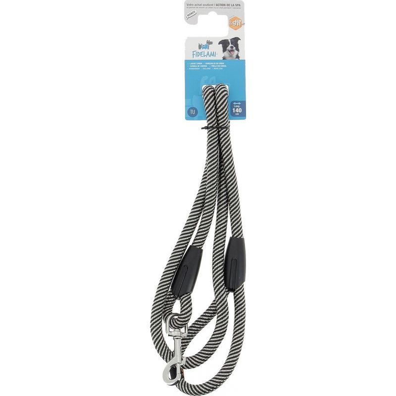 Laisse corde Fidelami rigide et robuste. Poignée solide pour une bonne prise en main. Cette longe sera utile en promenade ou pour le dressage. Matière résistante aux intempéries et aux mâchouillements du chien. Agréable au toucher. Boucle métal anti-torsion pour attache rapide.