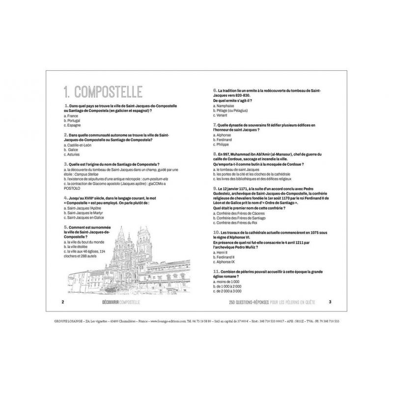 Contenu : 250 questions/réponses pour apprendre, comprendre et découvrir le Chemin de Compostelle. Lauteur ne se contente pas de donner brièvement les réponses aux questions. Celles-ci sont largement développées et renvoient en outre vers des références de lecture, darticles, détudes et liens vers des sites web. Un ouvrage ludique, tout en restant érudit, pour tester ses connaissances sur le... Lire la suite