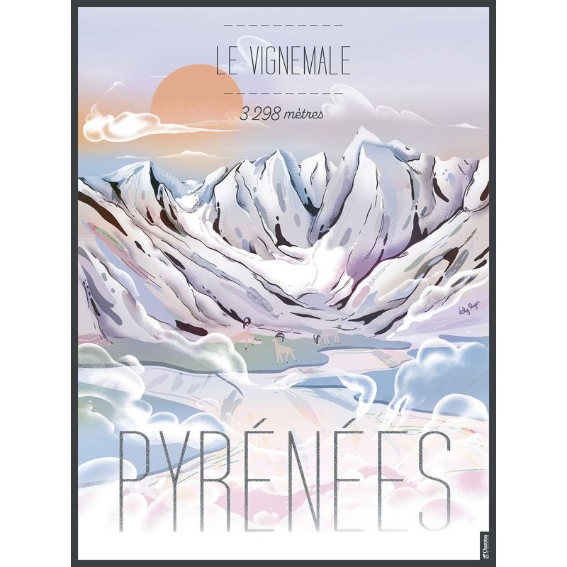Plongez dans la majesté des Pyrénées avec cette affiche illustrée du Vignemale, l'un des plus hauts sommets de la chaîne montagneuse.