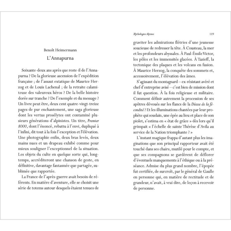 À quoi répondons-nous en gravissant les montagnes ? En s'inspirant de la démarche de Roland Barthes, François Damilano réunit ici une cordée d'écrivains, de journalistes et d'alpinistes pour interroger les icônes de notre culture de l'altitude. De la figure de Gaston Rébuffat à la symbolique de l'edelweiss, du piolet...