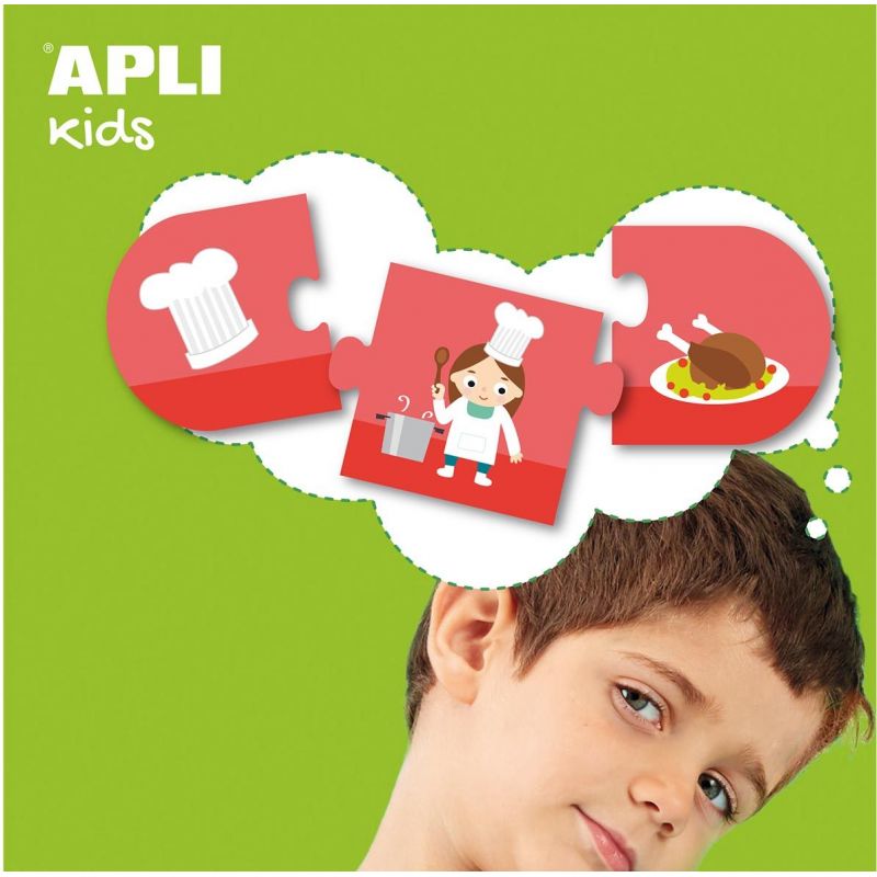Le puzzle L'origine des choses contient 36 pièces sur le thème des métiers et leurs outils (12 séquences de 3 pièces).