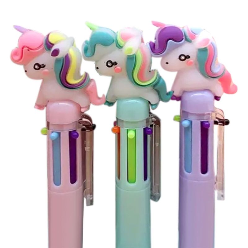 Stylos à bille trop mignons avec 6 couleurs de mines différentes : bleu, rose, orange, vert, violet et noir.