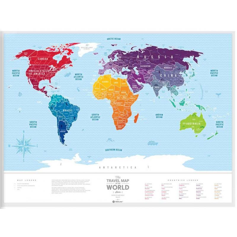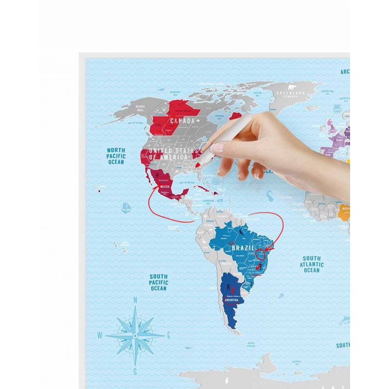 Cette carte en plastique de grande qualité est un magnifique objet de décoration. Grattez les pays visités et ajoutez des annotations avec le marqueur fourni.