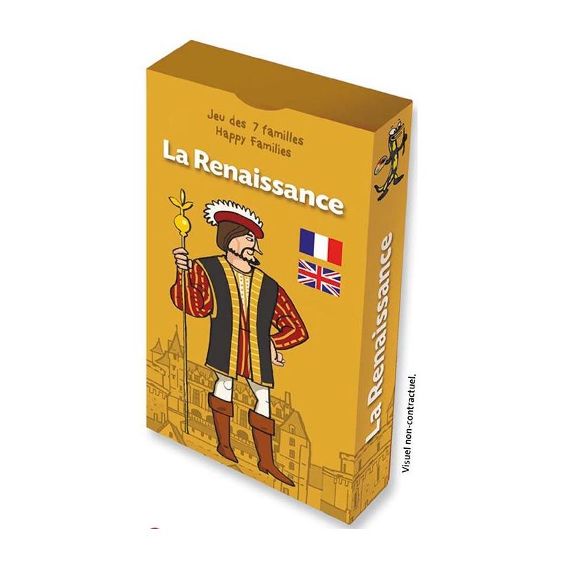 Bien plus quun simple jeu des 7 familles, « La Renaissance » propose de découvrir cette période clé de lhistoire de façon ludique. Les familles « Chefs », « Aventuriers », « Événéments », « Arts et artistes », « À la cour », « Inventions » et « Venus dailleurs » sont autant de thèmes qui sensibilisent petits et grands à la Renaissance à loccasion de parties acharnées en famille.